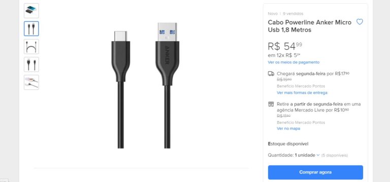 Nos campos onde há informações sobre prazo de entrega e frete, haverá a opção