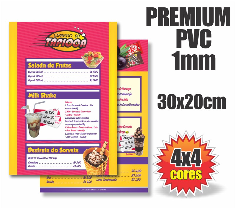 Cardápio PREMIUM PVC 1mm, Ofício 30x20cm - 4x4.