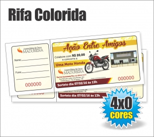 Rifas/Ação entre Amigos/Jantar Beneficente - Tamanho 7x15,5cm- 4x0 fabricado em sulfite 75g.